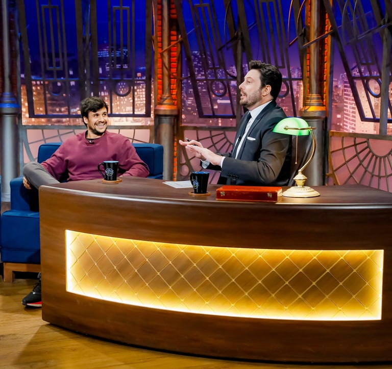 Interações e jogos de improviso que garantem um clima leve e participativo.